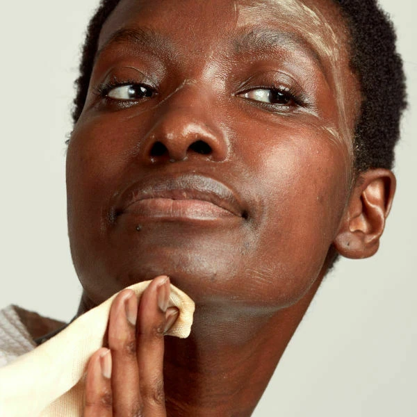 Inclus avec Curtain Call : une lingette en mousseline de coton ultra fine pour retirer l’excès de masque.