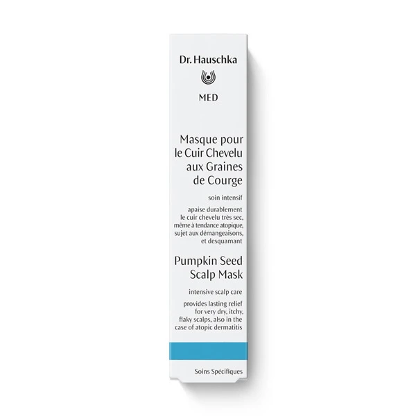 Le masque pour le cuir chevelu aux graines de courge de la gamme Dr. Hauschka Med est un soin nourrissant intense formulé pour en finir avec le cuir chevelu très sec, soulager les démangeaisons et les irritations.