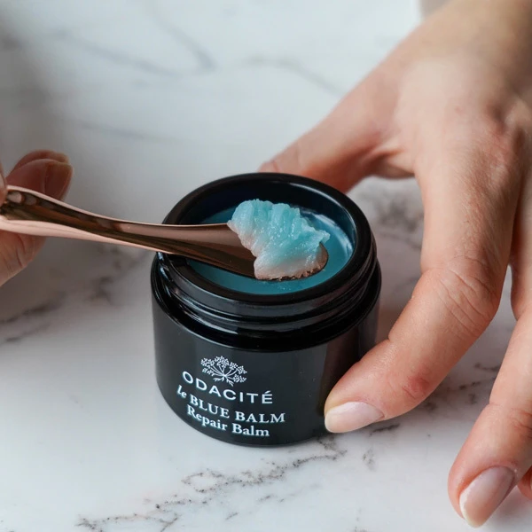 Le Blue Balm de la marque Odacité est un baume multi-usages intensément régénérant qui fond au contact de la peau pour apporter une hydratation réconfortante et aider à réparer la peau irritée et soulager les inflammations, créant une barrière cutanée plus forte et une peau plus souple et lumineuse.
