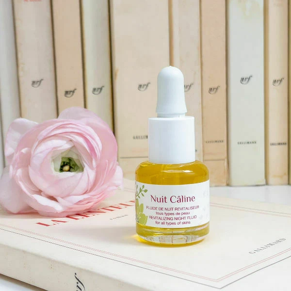 Au coeur de la nuit, le fluide cosmétique Nuit Câline de la marque Douces Angevines redonne éclat, élasticité et douceur à la peau en activant son auto-revitalisation.