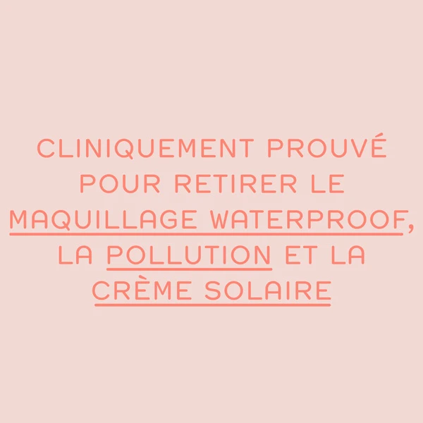 * Scientifiquement prouvée par un expert lors d’un essai clinique pour retirer le maquillage waterproof, la pollution et la protection solaire.