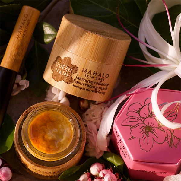 Ce masque visage façon « chutney », sa consistance est un peu plus épaisse qu’une gelée, est une solution naturelle pour un éclat instantané grâce aux fleurs exotiques, aux baies, aux fruits, aux épices et aux minéraux marins des îles hawaïennes. Le masque Queen Nani est comme un jardin hawaïen dans un pot en bambou !